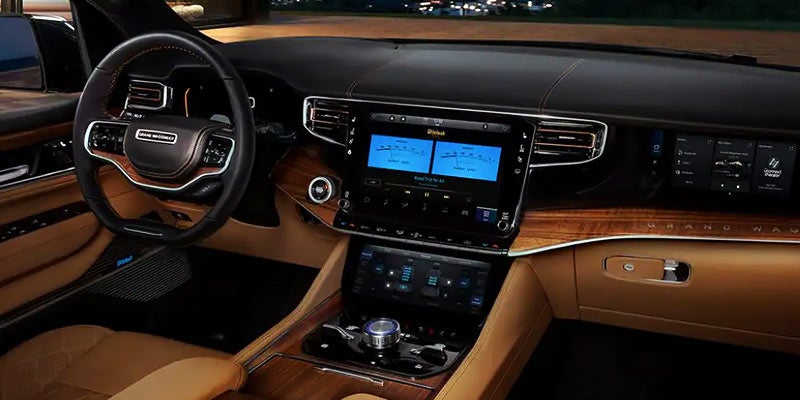 When it comes to a luxurious interior, the 2022 Grand Wagoneer delivers yet again. The spacious eight-seater cabin features suede upholstery, American walnut trim, and dazzling metal accents. A 24-way power-adjustable driver's seat with massage settings will keep you comfortable on long drives, while a rear-seat entertainment system will delight your passengers and eliminate road-trip boredom. When the rear seats are unoccupied, fold them flat for 116.7 cubic feet of cargo space. You'll also enjoy the next-generation Uconnect infotainment system, which is even more intuitive and user-friendly than previous versions.