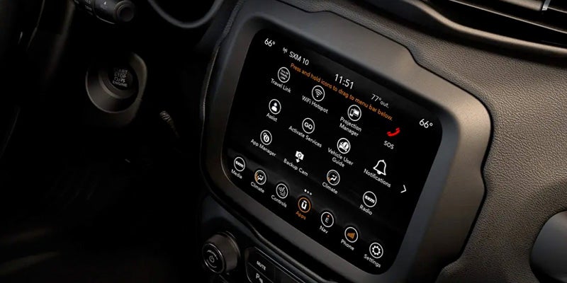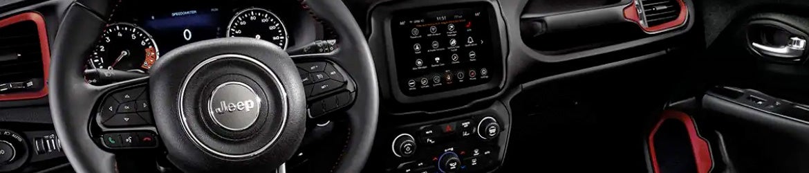 The 2022 Renegade's five-seater cabin gives everyone plenty of room to stretch out and enjoy the ride. With the Sport, you can take advantage of all-weather floor mats, a UConnect 4C NAV system featuring an 8.4-inch display, and steering wheel-integrated audio controls. Inside the Latitude, you'll find comfy cloth seating surfaces and a driver information digital cluster display measuring 7 inches. The Limited and Trailhawk add leather-trimmed seats with heating, a driver's seat with eight-way adjustability, and a heated steering wheel.