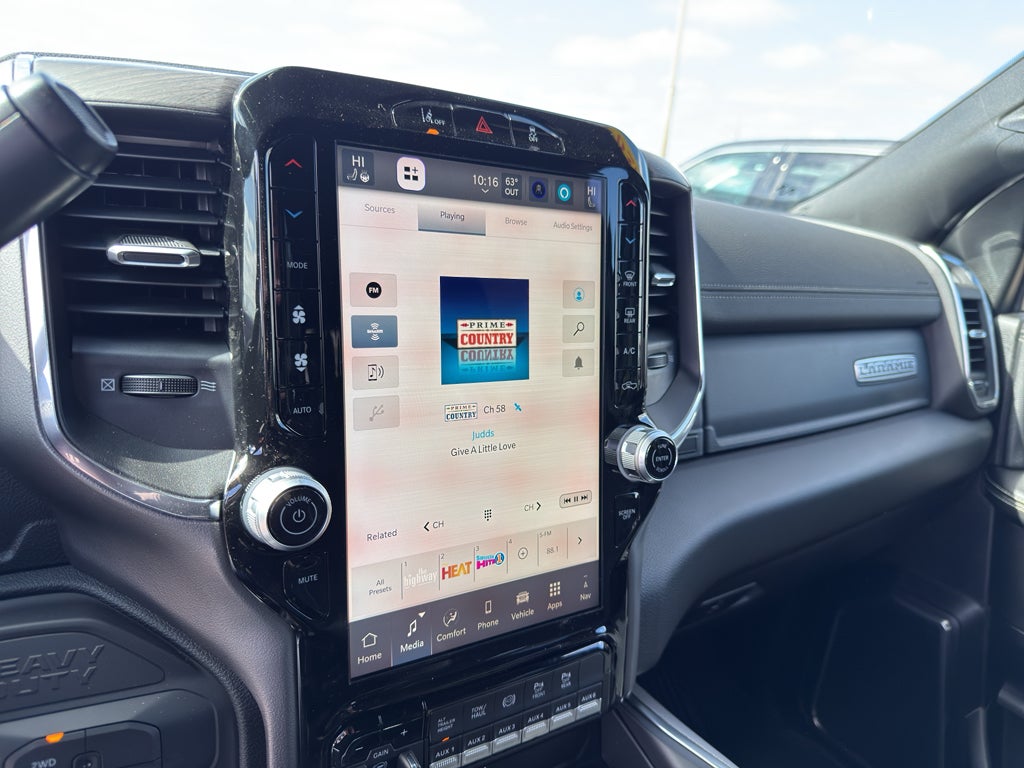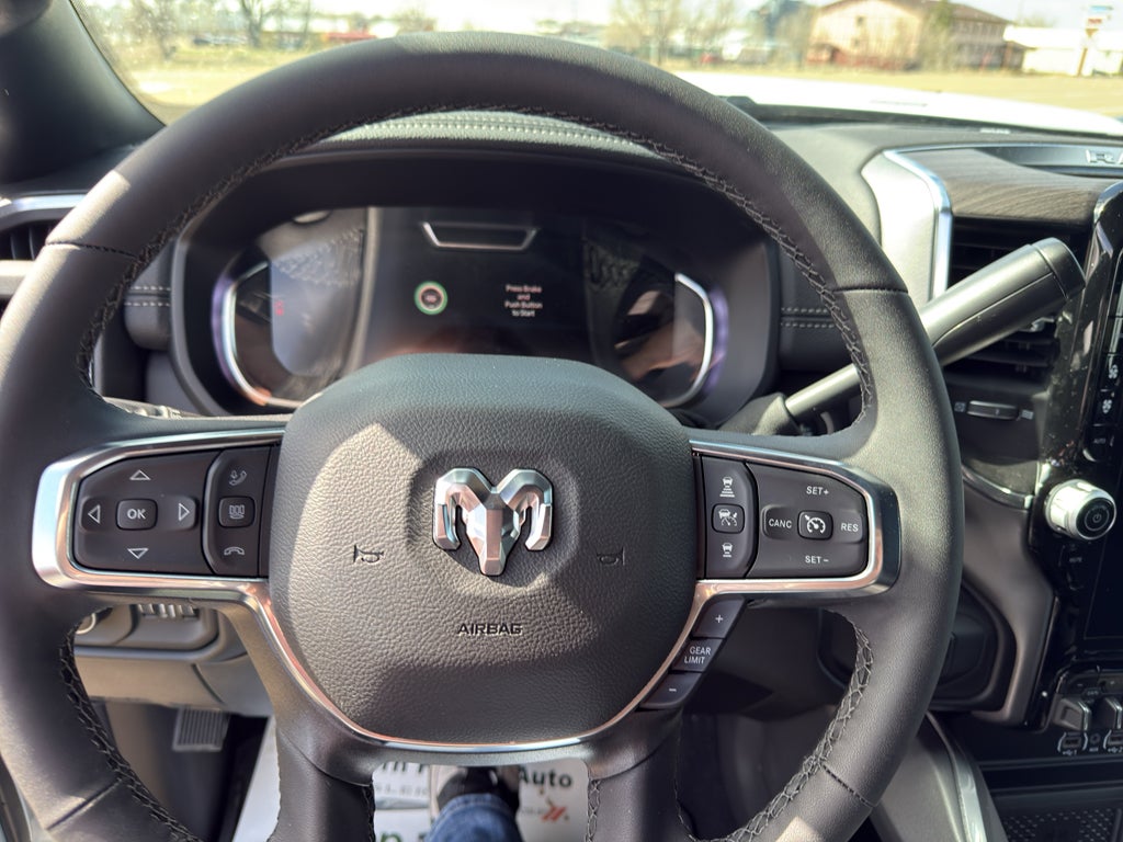 Cold Weather Group: Engine Block Heater; MOPAR Winter Front Grille Cover. Quick Order Package 24H Laramie. Night Edition: Firestone Brand Tires; LT285/60R20E OWL On/off Road Tires; Black Exterior Truck Badging; 20" X 8.0" Black Painted Aluminum Wheels; Gloss Black Grille Billets/accents; Body Color Grille-Surround; Sport Performance Hood; Black Exterior Mirrors; Black Wheel Center Hub. Laramie Level 1 Plus Equipment Group: Center Stop Lamp with Cargo View Camera; Rain Sensitive Windshield Wipers; Power Adjustable Pedals with Memory; LED Bed Lighting; Traffic Sign Recognition; Auto Power-Folding Mirrors; Adaptive Steering System; Exterior Mirrors with Heating Element; Auto Dim Exterior Mirror; Anti-Spin Differential Rear Axle; Drowsy Driver Detection; Mirror Running Lights; MOPAR Deployable Bed Step; Foam Bottle Insert (door Trim Panel); Power-Adjustable Convex Aux Mirrors; Active Lane Management System; Forward and Reverse Utility Lights; Leather Trimmed Bucket Seats; Power Heated Fold Telescopic Mirrors with Memory; Exterior Mirrors with Supplemental Signals; Exterior Mirrors Courtesy Lamps; MOPAR Spray in Bedliner; Remote Tailgate Release; Auto High Beam Headlamp Control; Chrome Exterior Mirrors; Exterior Mirrors with Memory; Power Adjust Mirrors; 2nd Row in Floor Storage Bins; Power Telescoping Mirrors; Auto Dim Exterior Passenger Mirror; Auto Adjust in Reverse Exterior Mirrors. Auto Level Rear Air Suspension. Power Sunroof. Leather Trimmed Bucket Seats. Center Stop Lamp with Cargo View Camera. Instrument Panel Mounted Auxiliary Switches. MOPAR Front and Rear Rubber Floor Mats. Clearance Lamps. Transfer Case Skid Plate Shield. **Equipment listed is based on original vehicle build and subject to change. Please confirm the accuracy of the included equipment by calling the dealer prior to purchase.**