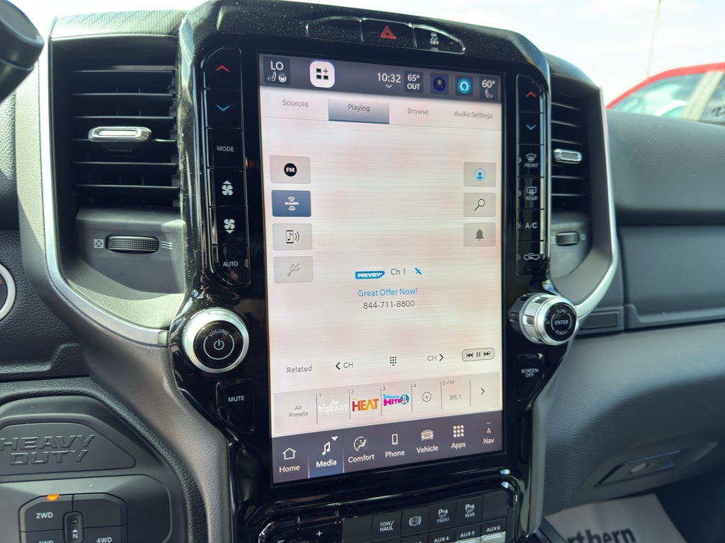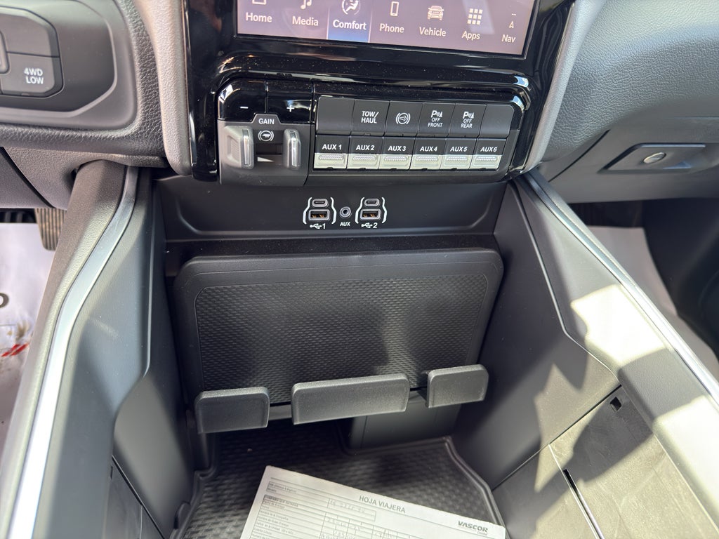 Quick Order Package 24Z Big Horn. Cold Weather Group: Engine Block Heater; MOPAR Winter Front Grille Cover. Big Horn Level 1 Plus Equipment Group: Google Android Auto; SiriusXM Radio Service; For Details Visit DriveUconnect.com; For More Info. Call 800-643-2112; Integrated Voice Command with Bluetooth®; Emergency Vehicle Alert System (EVAS); 12" Touchscreen Display; Glove Box Lamp; Auto Power-Folding Mirrors; Footwell Courtesy Lamp; Mirror Running Lights; MOPAR Deployable Bed Step; Alexa Built-In; Apple CarPlay; Power-Adjustable Convex Aux Mirrors; Forward and Reverse Utility Lights; Locking Lower Glove Box; Remote Start System; 9 Alpine Speakers with Subwoofer; Disassociated Touchscreen Display; Dual Glove Boxes; 2nd Row in Floor Storage Bins; Rear View Auto Dim Mirror; Rear Dome with On/off Switch Lamp; LED Bed Lighting; Connectivity - US/Canada; GPS Navigation; 4G LTE Wi-Fi Hot Spot; GPS Antenna Input; Exterior Mirrors with Heating Element; SiriusXM with 360L; Global Telematics Box Module; Connected Travel and Traffic Services; Foam Bottle Insert (door Trim Panel); Black Exterior Mirrors; Big Horn Instrument Panel Badge; Off-Road Information Pages; Selectable Tire Fill Alert; Trailer Tow Pages; HD Radio; Uconnect 5 Navigation with 12.0" Display Radio; Power Heated Fold Telescopic Mirrors; Exterior Mirrors with Supplemental Signals; Steering Wheel Mounted Audio Controls; Exterior Mirrors Courtesy Lamps; Air Conditioning ATC with Dual Zone Control; MOPAR Spray in Bedliner; Power Adjust Mirrors; Luxury Steering Wheel; Power Telescoping Mirrors. Heated Seats and Wheel Group: Heated Front Seats; Heated Steering Wheel. Quick Order Package 2UZ Big Horn. Chrome Flat Wheel-To-wheel Side Steps. Upfitter Electronic Module (VSIM). Premium Cloth Bucket Seats. 50 Gallon Fuel Tank. Remote Start System. Instrument Panel Mounted Auxiliary Switches. MOPAR Front and Rear Rubber Floor Mats. Rear Wheelhouse Liners. Clearance Lamps. Power 2-Way Driver Lumbar Adjust. Transfer Case Skid Plate Shield. **Equipment listed is based on original vehicle build and subject to change. Please confirm the accuracy of the included equipment by calling the dealer prior to purchase.**